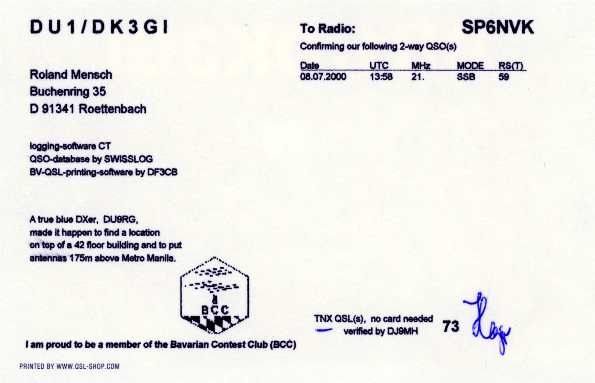 Znak wywoławczy: DU1/DK3GI.