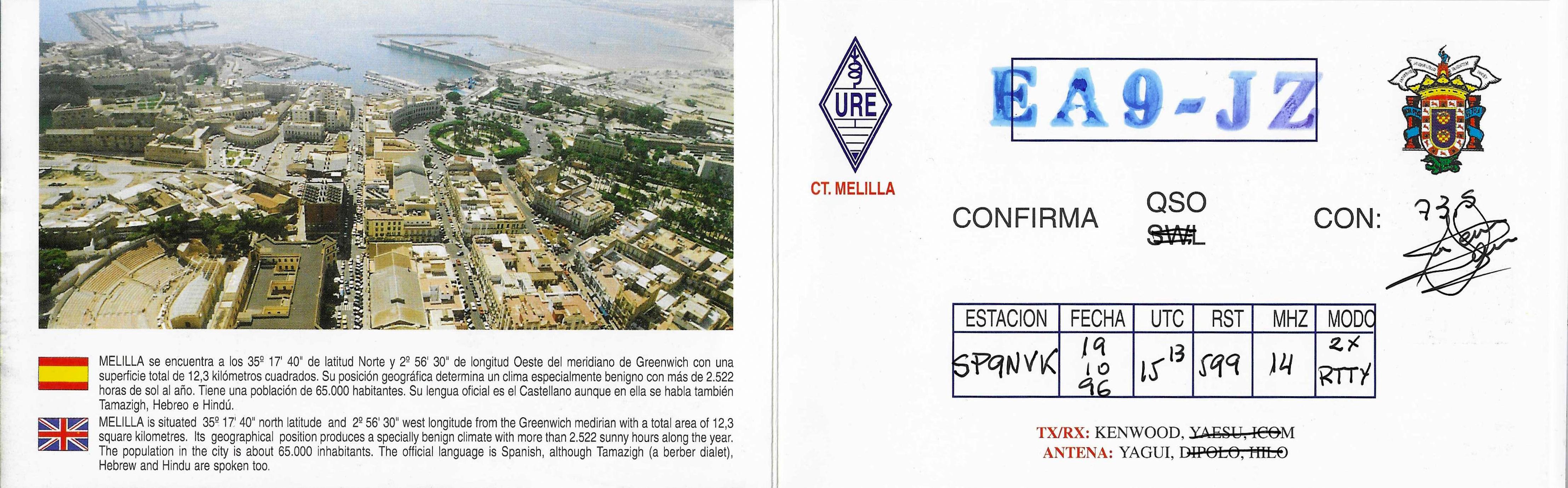 łączność radiowa ; karty QSL ; krótkofalarstwo ; Melilla