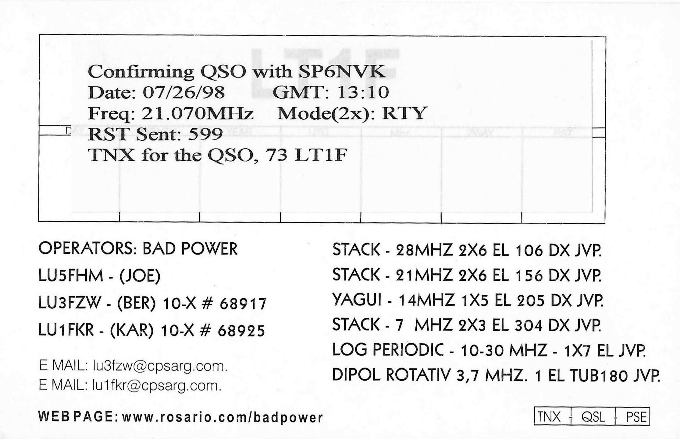 łączność radiowa ; karty QSL ; krótkofalarstwo ; Argentyna