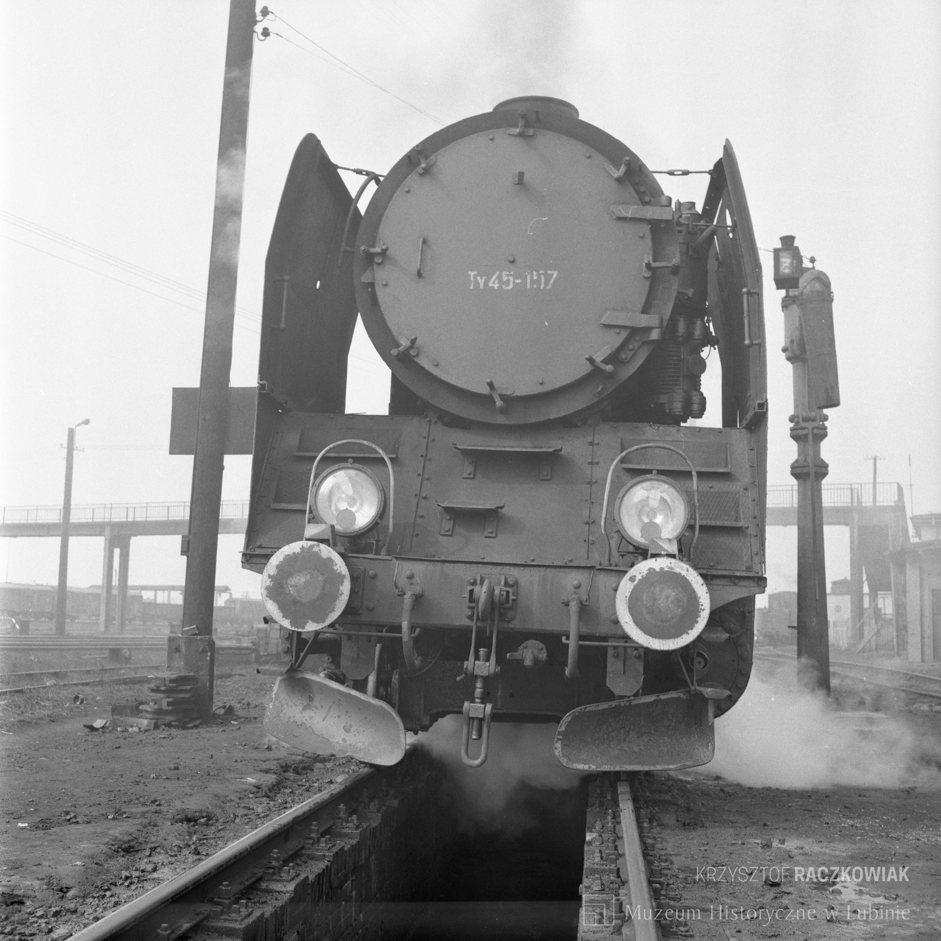 Stacja Miłkowice : parowóz Ty 45-157 podjeżdża by zatankować wodę