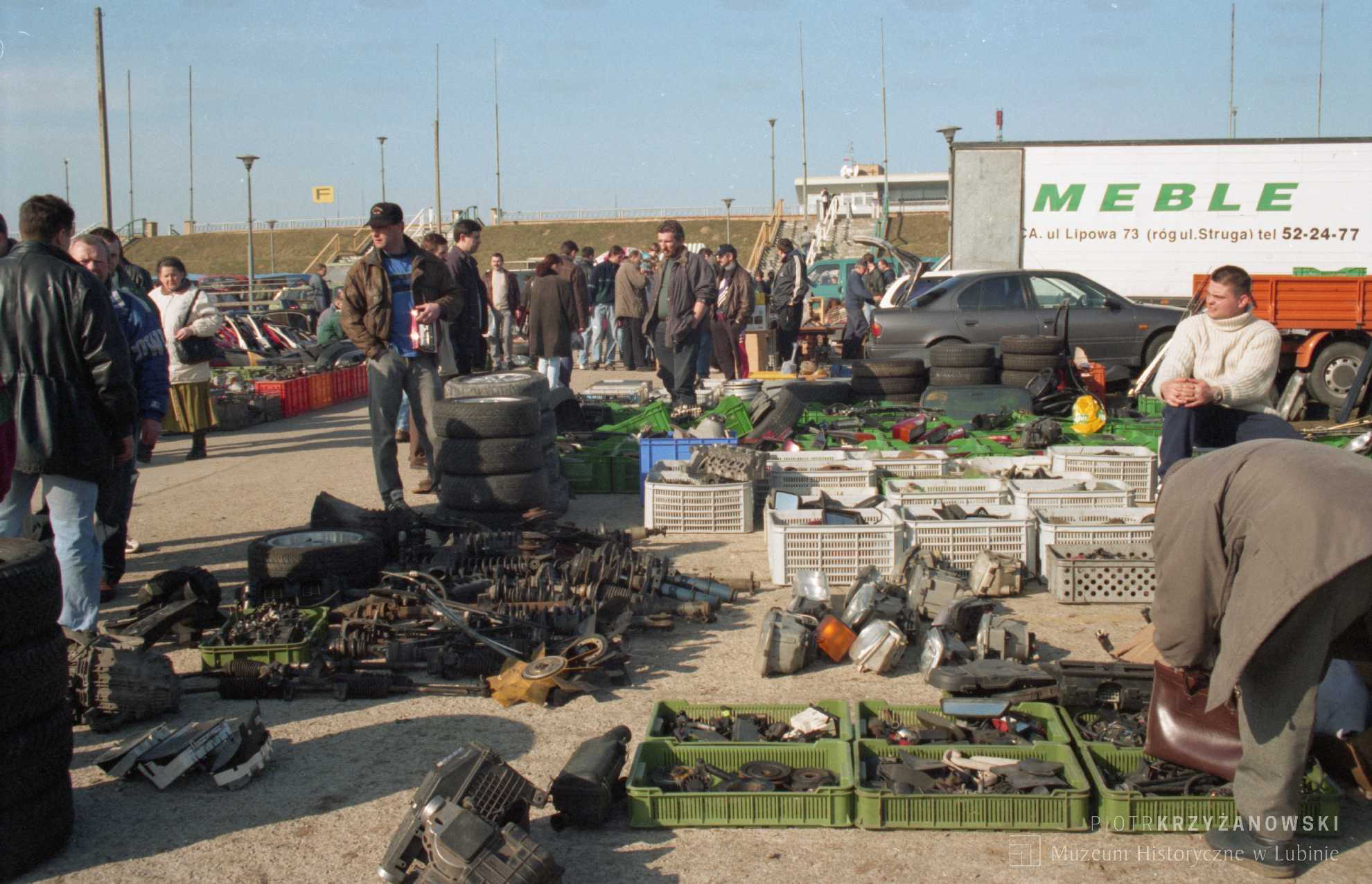 Opis:Kolorowe fotografie przedstawiają giełdę samochodową odbywającą się co sobotę, a jeszcze wcześniej także w każdą niedzielę przy stadionie Zagłębia Lubin.