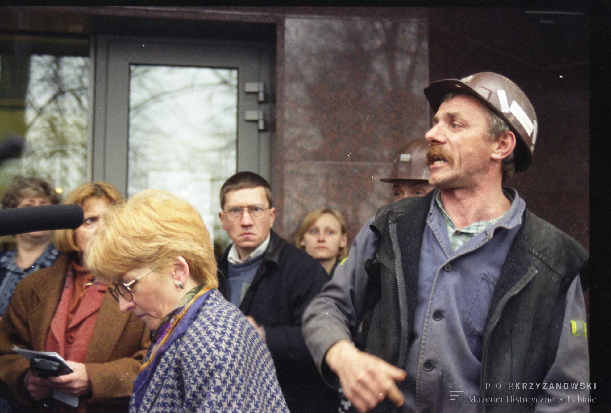 Group publication title: Creator: Subject:Zagłębie Miedziowe ; fotografie ; Lubin ; strajki ; manifestacje ; biuro zarządu KGHM