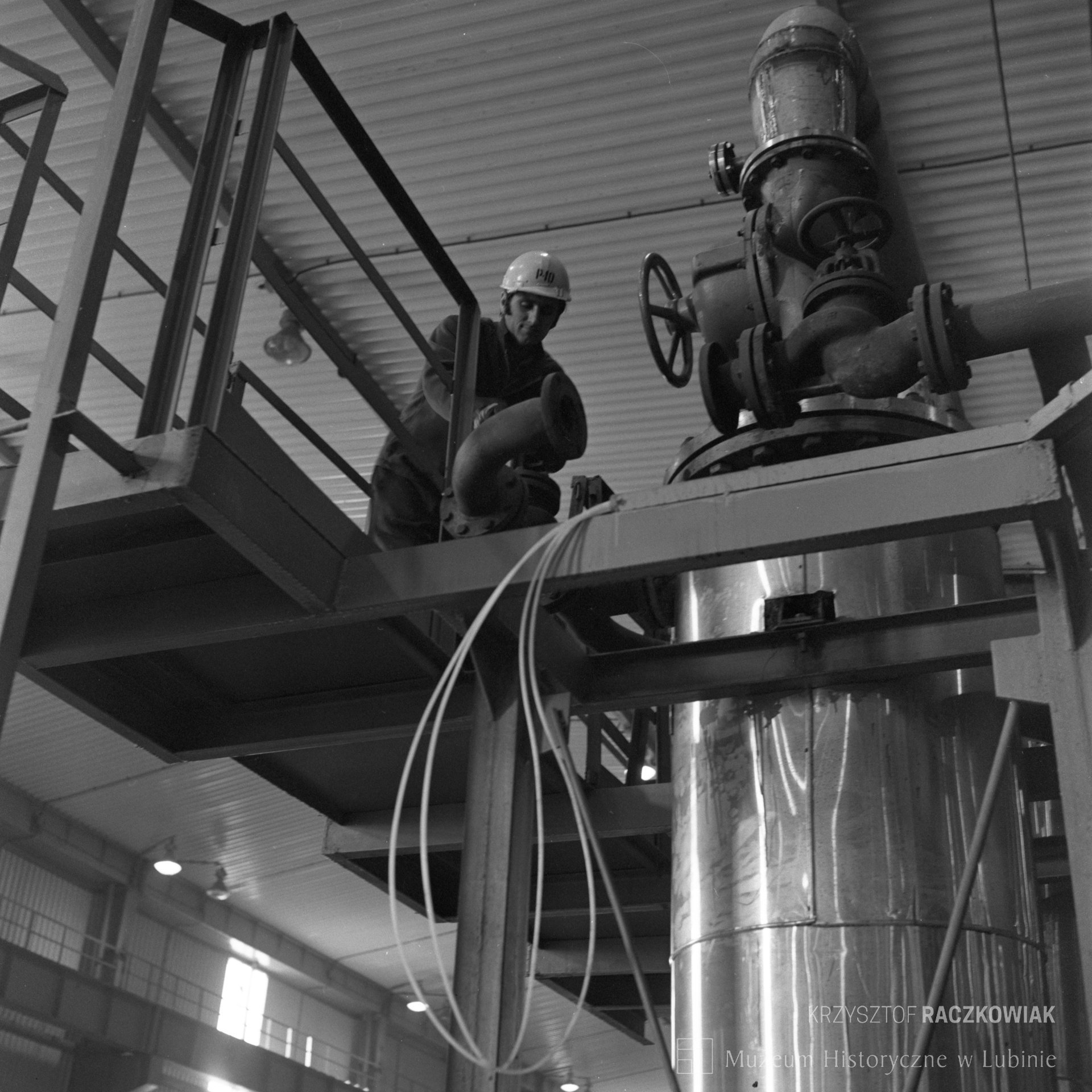 Description:Czarno-białe fotografie przedstawiają wnętrza hal huty miedzi i ich budowę.