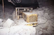 Kolorowa fotografia przedstawia wypadek na dole kopalni Zakładadów Górniczych „Lubin”.