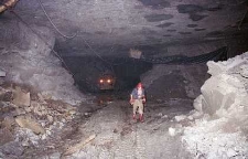 Kolorowa fotografia przedstawia wybieranie urobku z chodnika w Zakładach Górniczych „Lubin”.