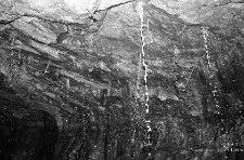Czarno-białe fotografie przedstawiają górników pracujących na przodku.