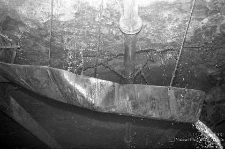 Czarno-białe fotografie przedstawiają górników pracujących na przodku.