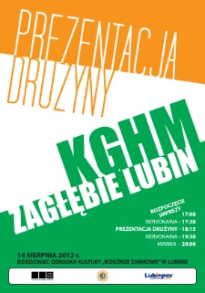 Plakat towarzyszył prezentacji drużyny KGHM Zagłębie Lubin odbywającej się na dziedzińcu Ośrodka Kultury „Wzgórze Zamkowe”.